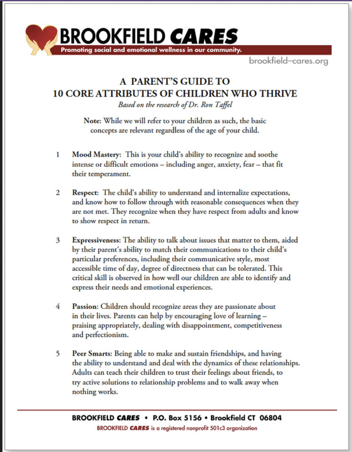 Based on the research of Dr. Ron Taffel, this guide discusses attributes that can build the foundations of strong character in our children. Dr. Taffel’s books are also great resources.